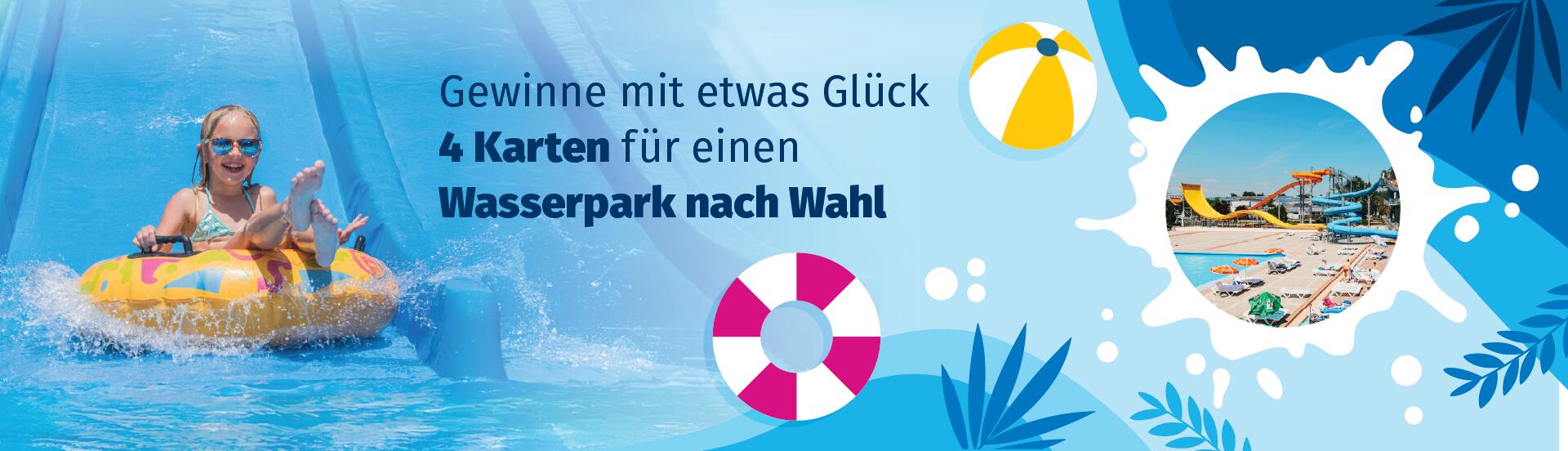 • 4 Karten pro Gewinn für einen Eintritt in einen Wasserpark nach Wahl in Deutschland, mit maximalem Wert von 40 € pro Eintrittskarte.