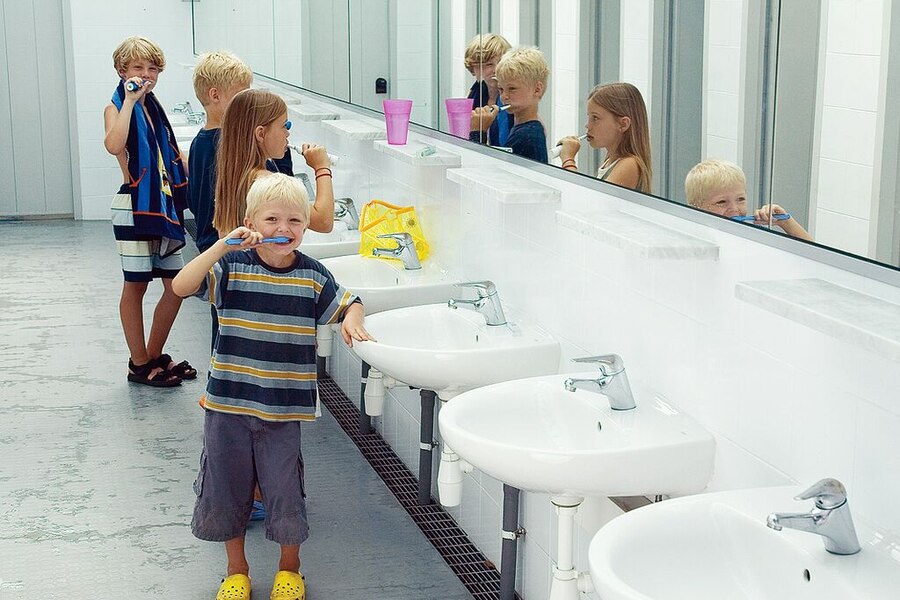 - Einzelwaschkabinen: kaltes Wasser
