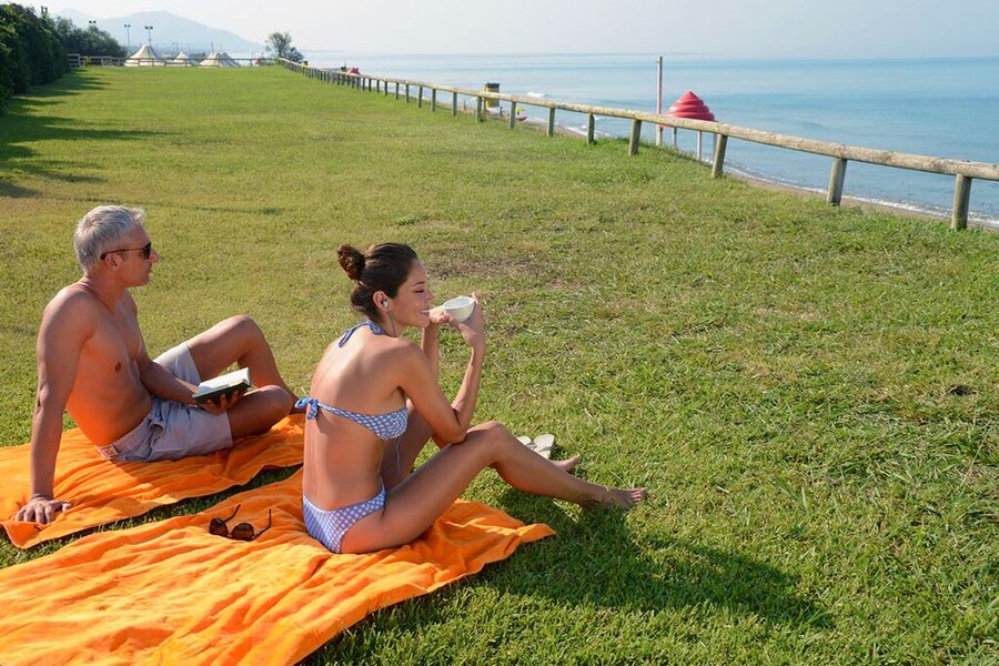 Baia Domizia Camping Village liegt nördlich von Neapel am Tyrrhenischen Meer, in der prachtvollen Umgebung von Gaeta und Formio. Der Campingplatz verfügt über einen eigenen Sandstrand und eine Liegewiese mit Blick auf die Bucht.Sport, Spiel und Einkaufsstraße