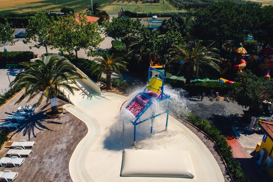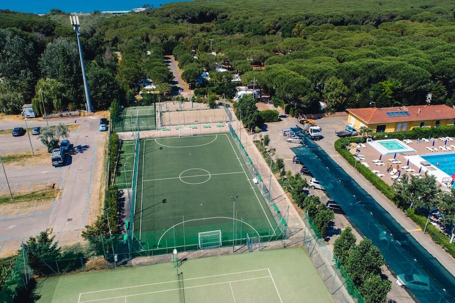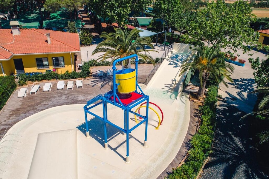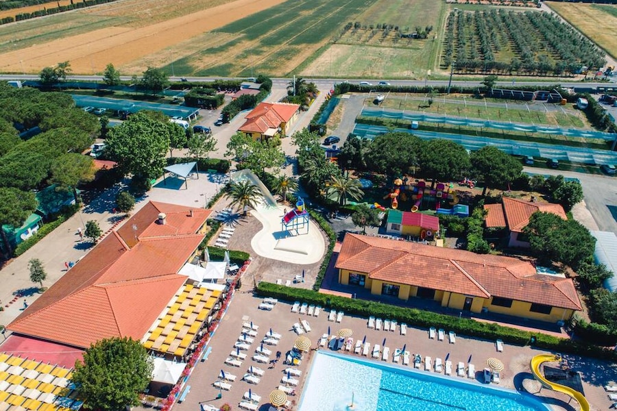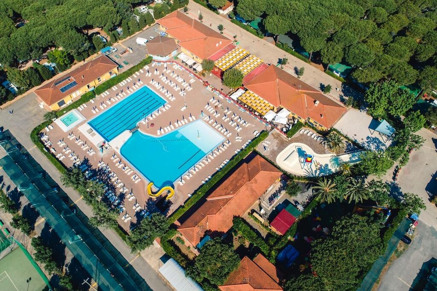 Der Campingplatz liegt in Cecina Mare an der Costa degli Etruschi, einer beliebten Region mit langen Sandstränden und viel Grün. Durch den Pinienwald spazierst du in wenigen Minuten bis ans Meer. Auf dem Platz selbst sorgt das Schwimmbad mit Rutsche und Whirlpool für stundenlangen Badespaß. Du möchtest deinen Hund mit in den Urlaub nehmen? Etwa 500 Meter entfernt befindet sich ein spezieller Hundestrand.