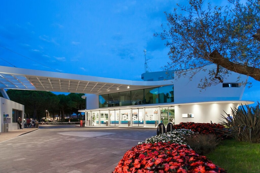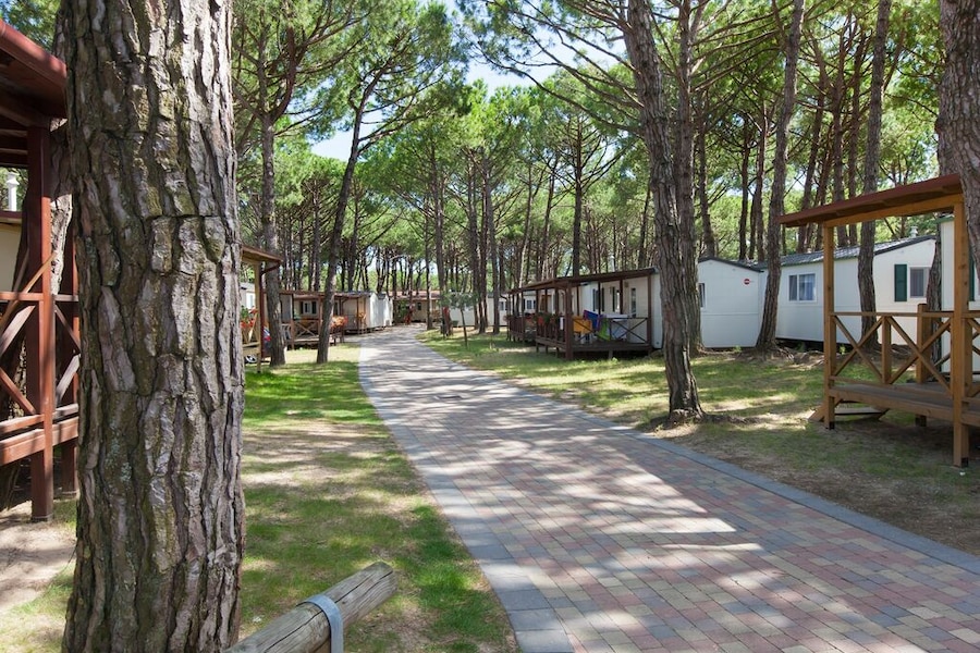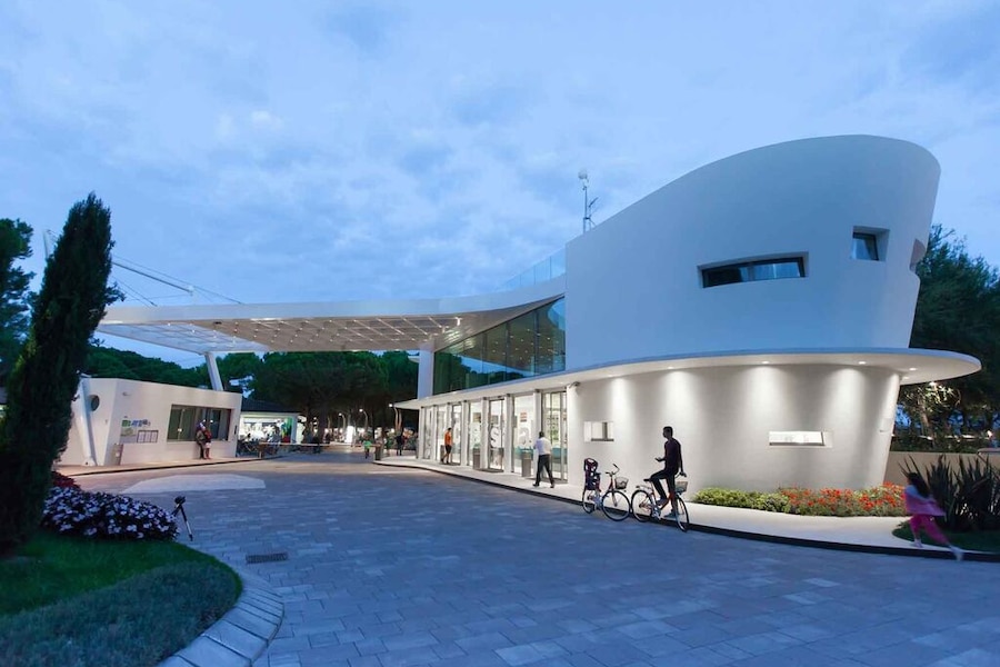 Dieser Campingplatz liegt auf der Halbinsel von Cavallino-Treporti. Das moderne Hauptgebäude wurde  in der Form eines riesigen Schiffes erbaut. Sein weißer Bug ist schon ganz am Anfang der Straße zu sehen. Sie übernachten hier direkt am Strand. Mieten Sie sich einfach einen Liegestuhl mit Sonnenschirm und lassen Sie die Seele baumeln. Schnell einen Blick auf die Wetter-App werfen? Kein Problem! Das WLAN-Netzwerk des Campingplatzes steht Ihnen sogar am Strand zur Verfügung.