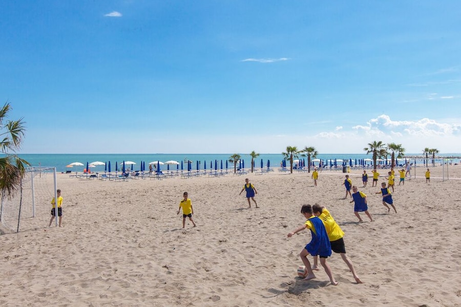Vom Pool direkt ins Meer springen? Kein Problem auf diesem italienischen Campingplatz direkt am Strand! Im großen Badeparadies bei Camping Ca’Pasquali bleibt wirklich kein Wunsch offen: Wasserrutschen, Whirlpools und sogar ein Wasser-Klettergerüst, an alles ist gedacht! Nach all dem Wasserspaß im Pool wollen Sie die Sonne am Strand genießen? Schon nach wenigen Schritten fühlen Sie den warmen Sand unter Ihren Füßen. Nachdem Sie sich beim Schwimmen in der Adria erfrischt haben, lassen Sie sich eine Pizza schmecken. Und danach sehen Sie sich mit der ganzen Familie noch eine fantastische Show im Freilufttheater an.