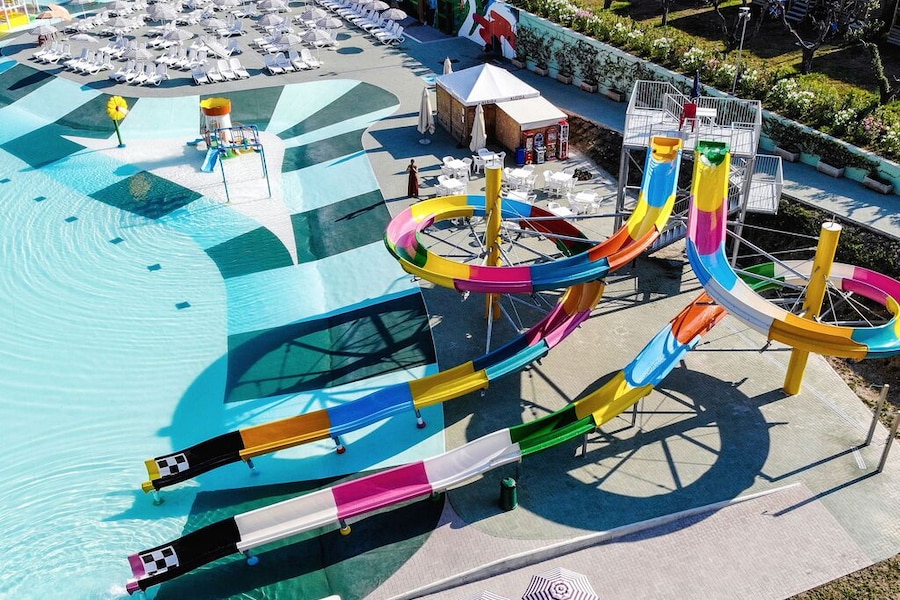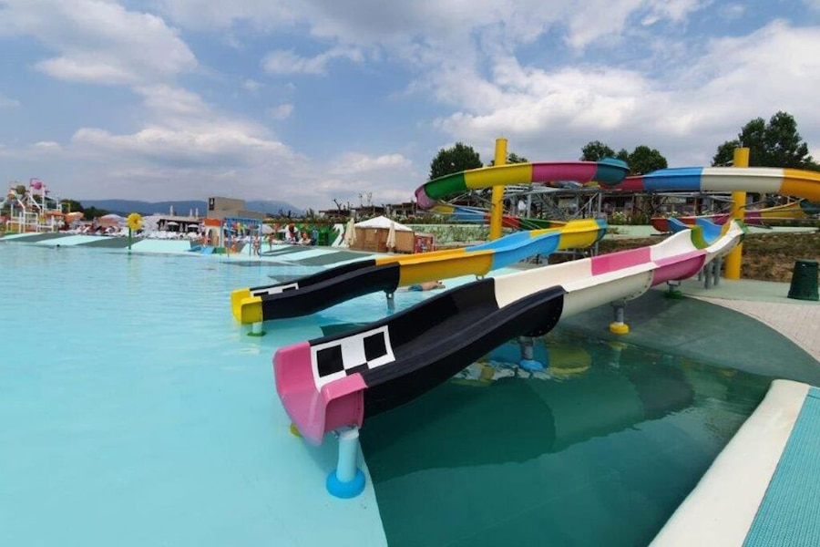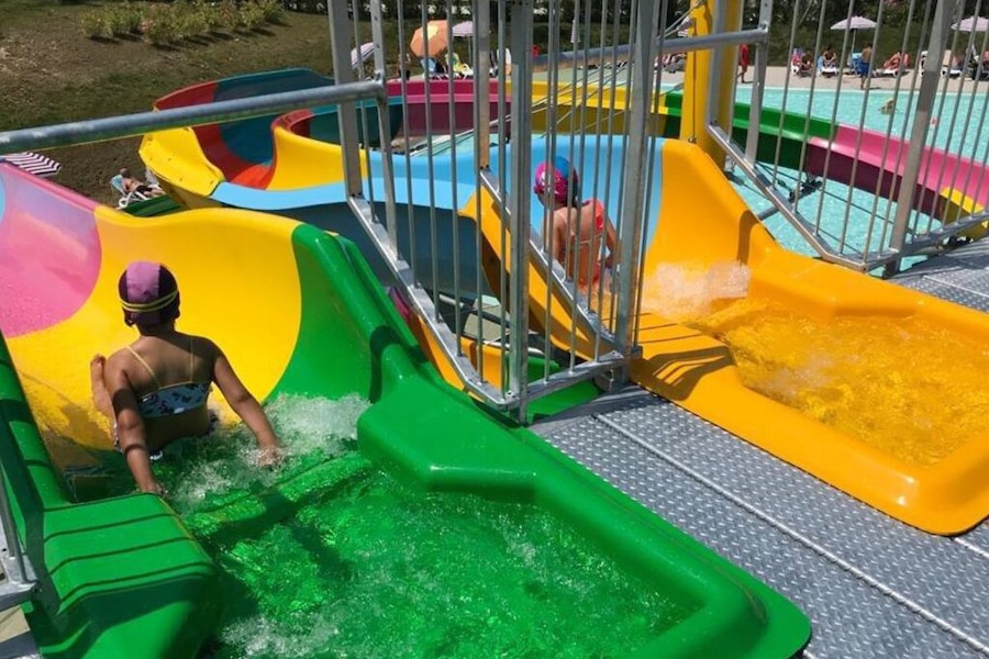 Mooi zwembad met glijbanen voor jongeren kinderen.