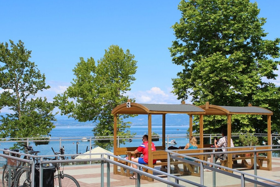 Ligt heel centraal, ideaal als je de fiets mee hebt. Via het prachtige pad langs het meer ben je zo in de stadjes