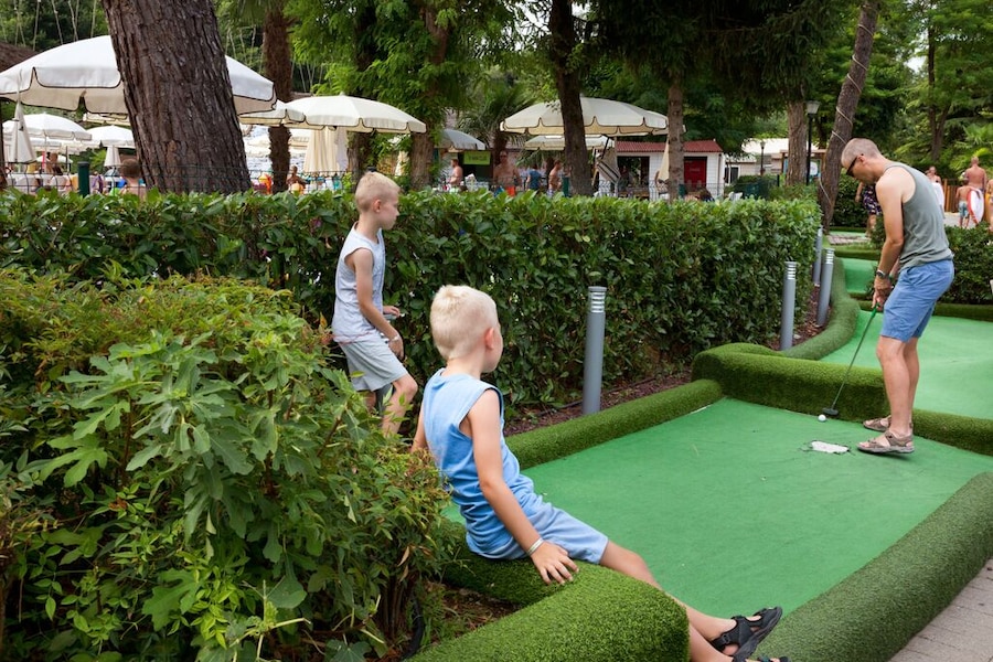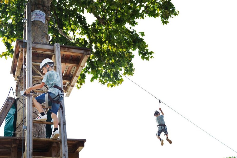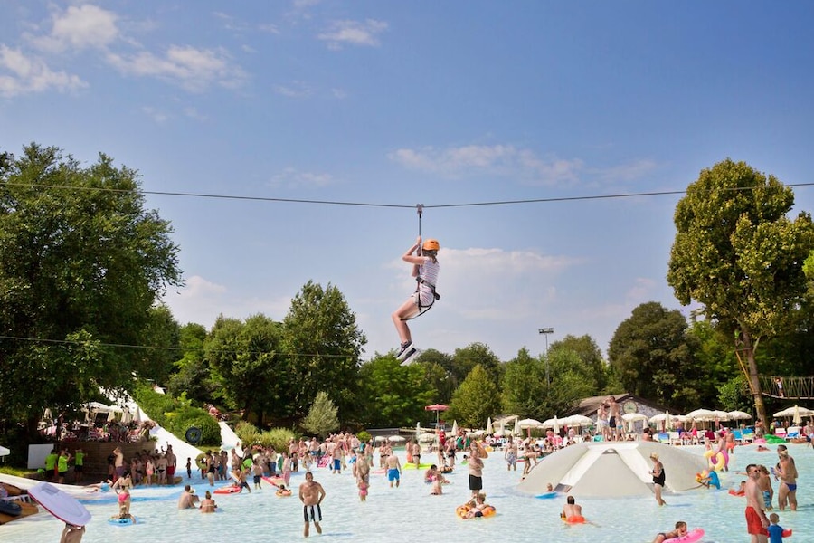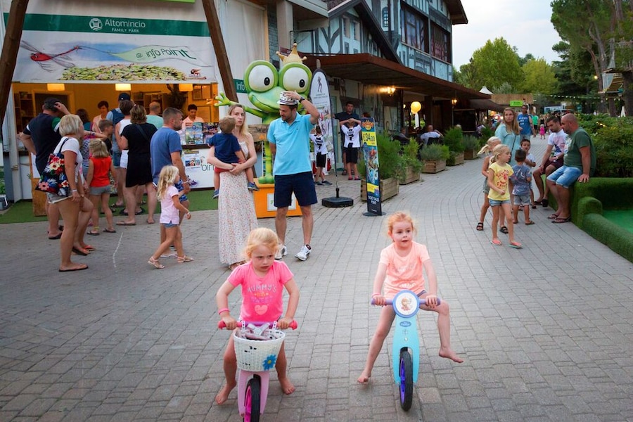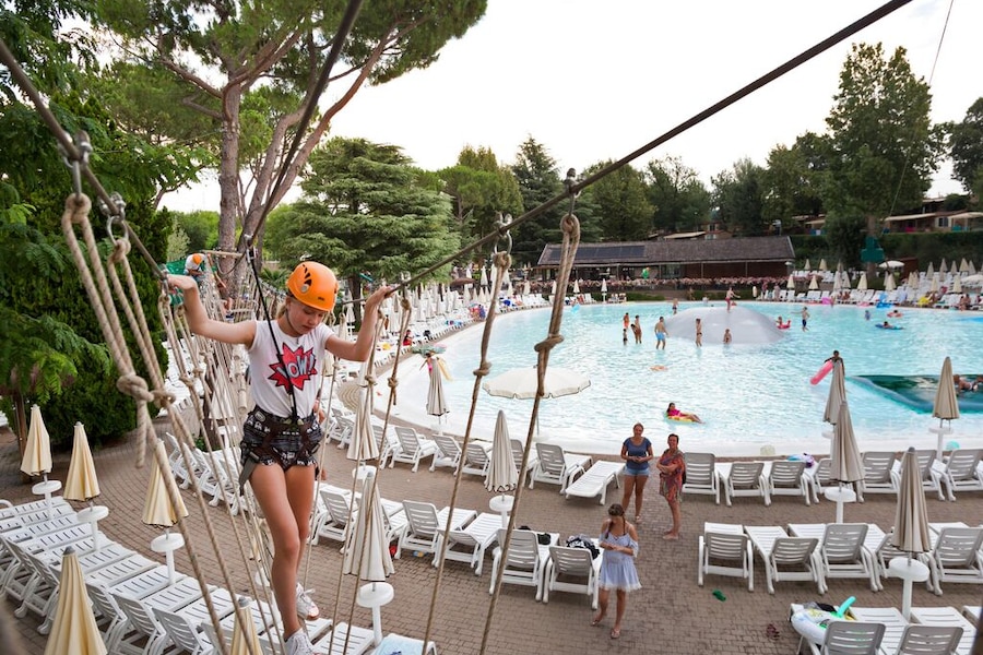 Das erste, was die Kinder nach ihrer Ankunft auf dem Camping wollen? Schwimmen natürlich! Das große, seichte Lagunenbecken bietet Wasserspaß für die ganze Familie. Die Kinder planschen im Schwimmbecken, das dank des weichen Bodens besonders sicher ist, während Sie sich in der Zwischenzeit unbesorgt auf einer Liege sonnen. Sie können aber auch gemeinsam die steilen Wasserrutschen hinabsausen. Im großen Wettkampfbecken ziehen Sie gemütlich Ihre Bahnen. Ganz egal, welches Schwimmbecken Sie bevorzugen: Der Camping hu Altomincio Village bietet endlosen Wasserspaß für jeden Geschmack.Klettern, Spielen und Tanzen