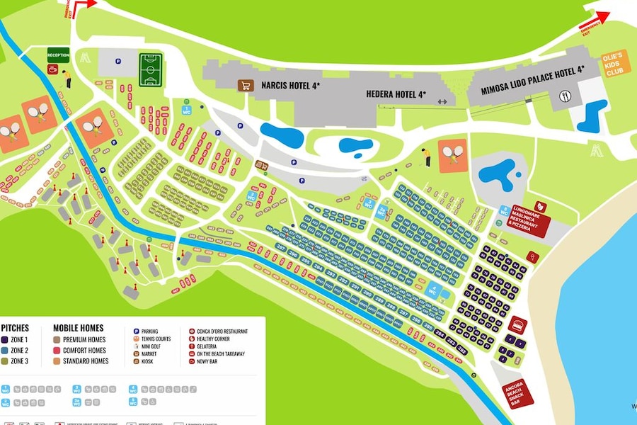 - Campingshop/Supermarkt ist ebenerdig oder erreichbar über eine Rampe für Rollstuhlfahrer