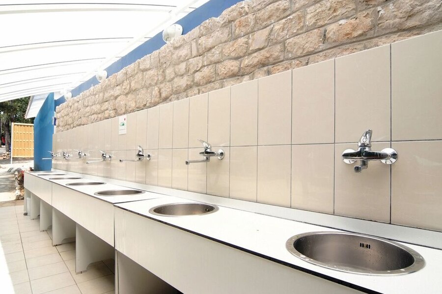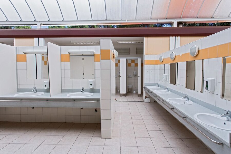 Sanitair erg verouderd en wordt slecht schoongehouden
