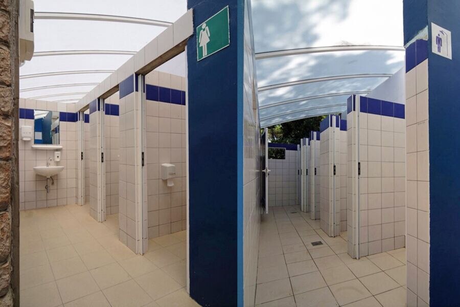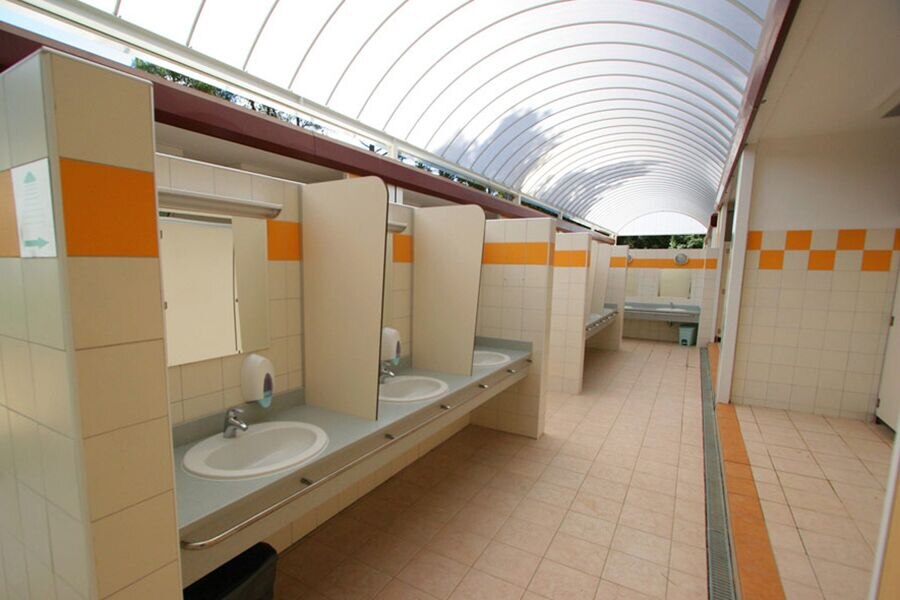 Toiletgebouw was slecht, douches veel te klein. Toiletpapier was vaak op.