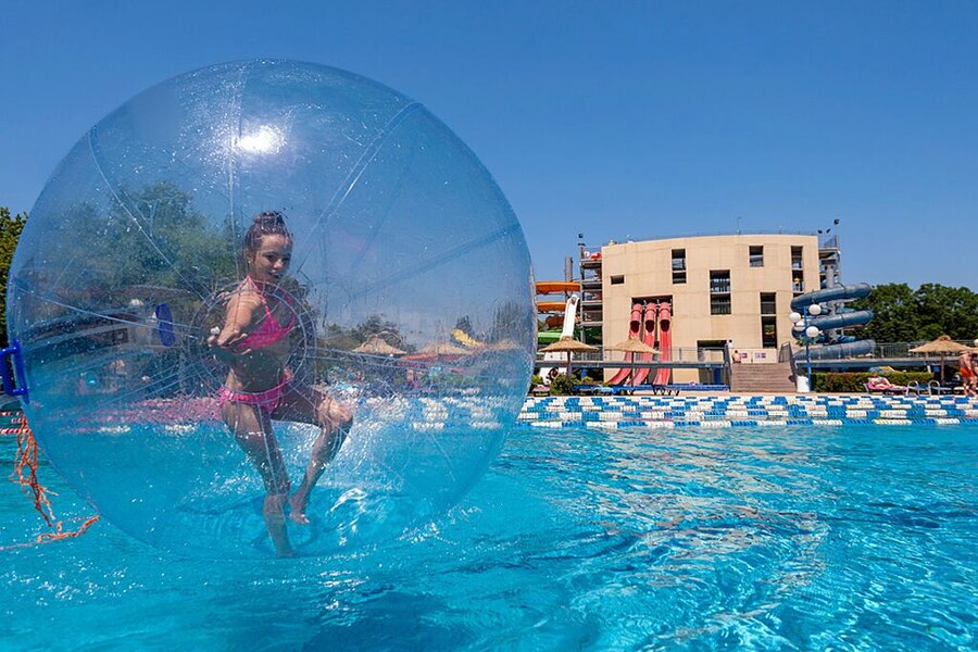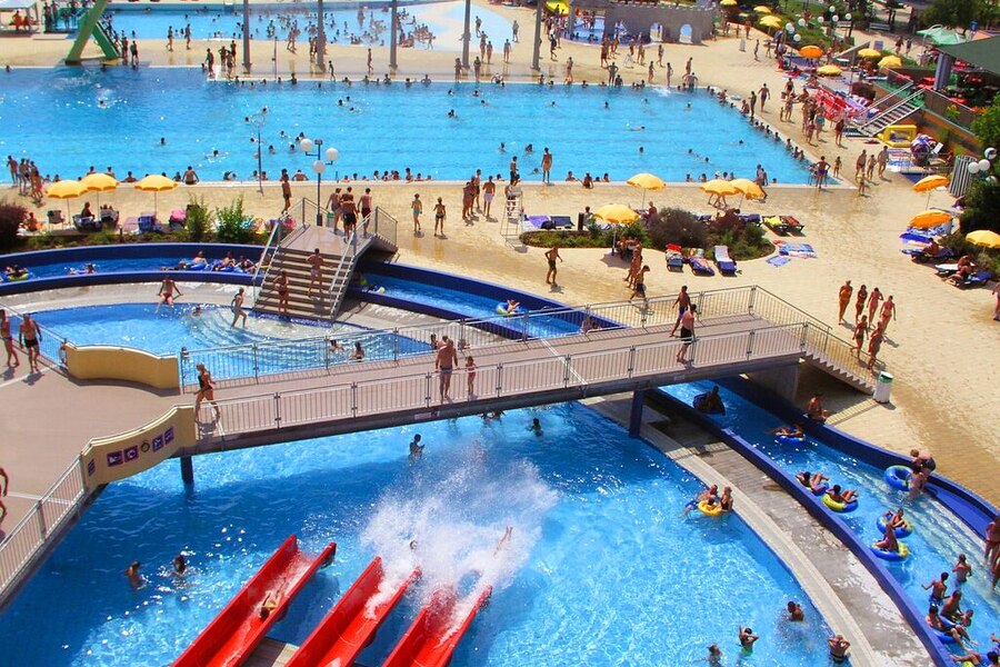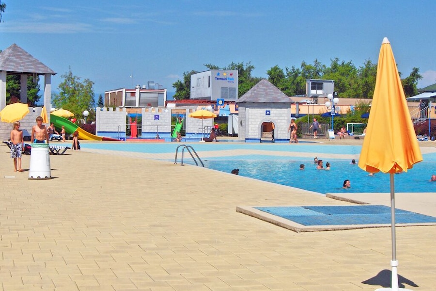 Für Kinder werden den ganzen Tag über Aktivitäten organisiert: Sport, Schwimmunterricht und kreative Workshops. Der Schwimmbadkomplex besteht aus Innen- und Außenbecken, Rutschen, Wellenbecken, einem langsam strömenden Flussbecken, einem Kinderbecken und zwei Whirlpools. Das Restaurant serviert hervorragende Gerichte mit erlesenen Weinen. Hier finden Sie auch Eiscreme, Grillbar, Pizzeria und Cocktailbar.Thermalbäder