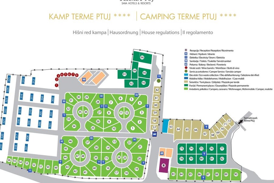 Der Campingplatz Terme Ptuj befindet sich direkt neben dem Terme Ptuj Thermal Park. Experten schätzen diesen attraktiven Ort zum Entspannen in verschiedenen Thermen. Gut für Körper und Geist: gegen Verletzungen, für Muskeln und für die Atmung!Ljubljana und Zagreb leicht erreichbar