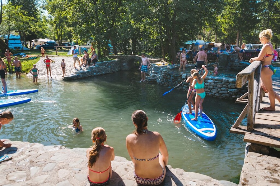 Camping Menina verfügt über einen eigenen Badeteich, der stundenlanges Planschvergnügen für Kinder garantiert. Der am Campingplatz vorbeiströmende Fluss lädt zu Kajakfahrten und zum Rafting ein. Kinder toben sich am Spielplatz oder bei der sechsmal wöchentlich angebotenen Animation aus. Jugendliche entspannen an einem gemütlichen Lagerfeuer oder nehmen an einer speziellen Wanderung für Jugendliche mit Übernachtung teil. Und es gibt einen Kletterpark, in dem man hoch über dem Boden einen spannenden Parcours absolvieren kann. In der Sauna oder während einer himmlischen Massage sammeln Sie frische Kräfte.